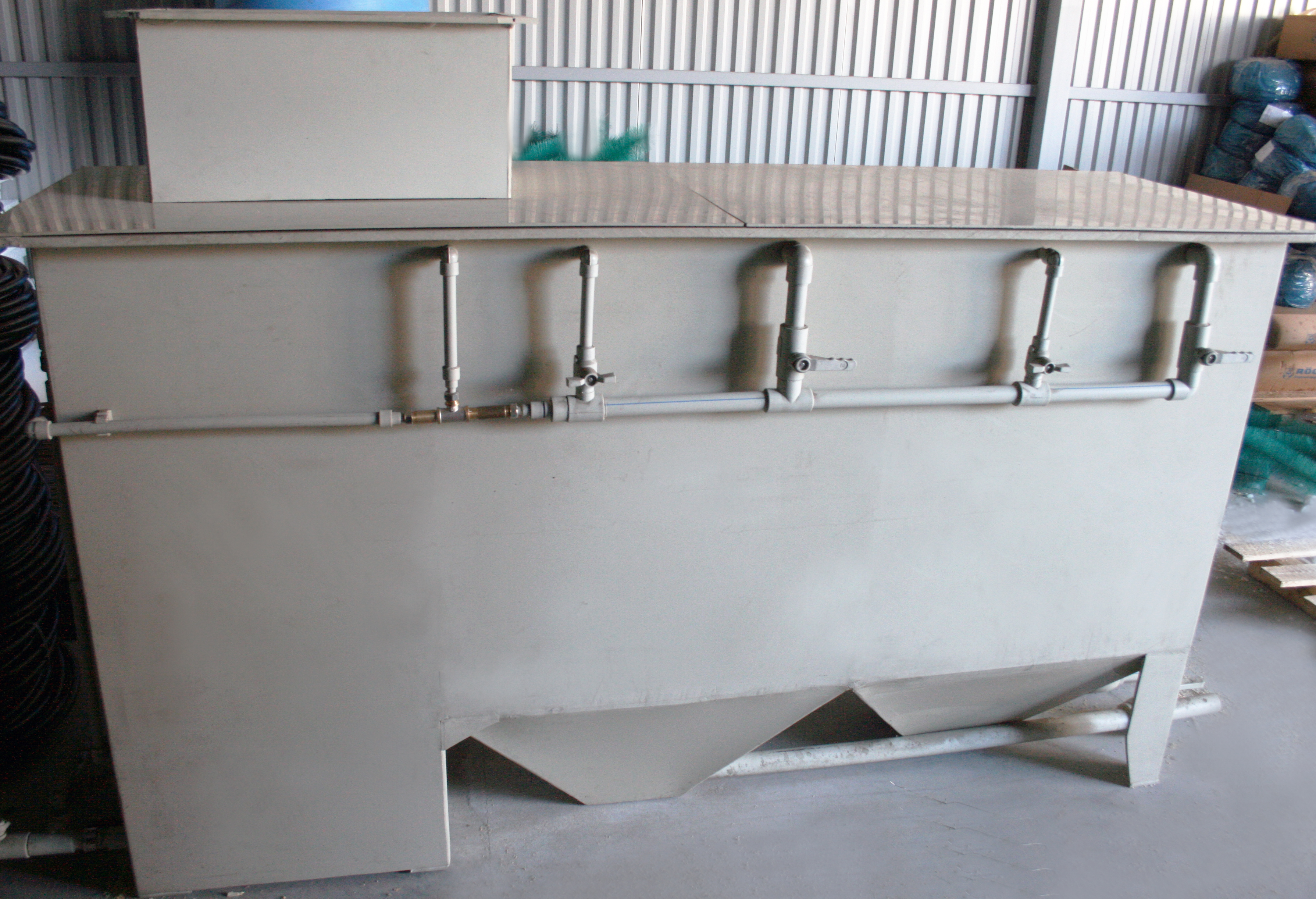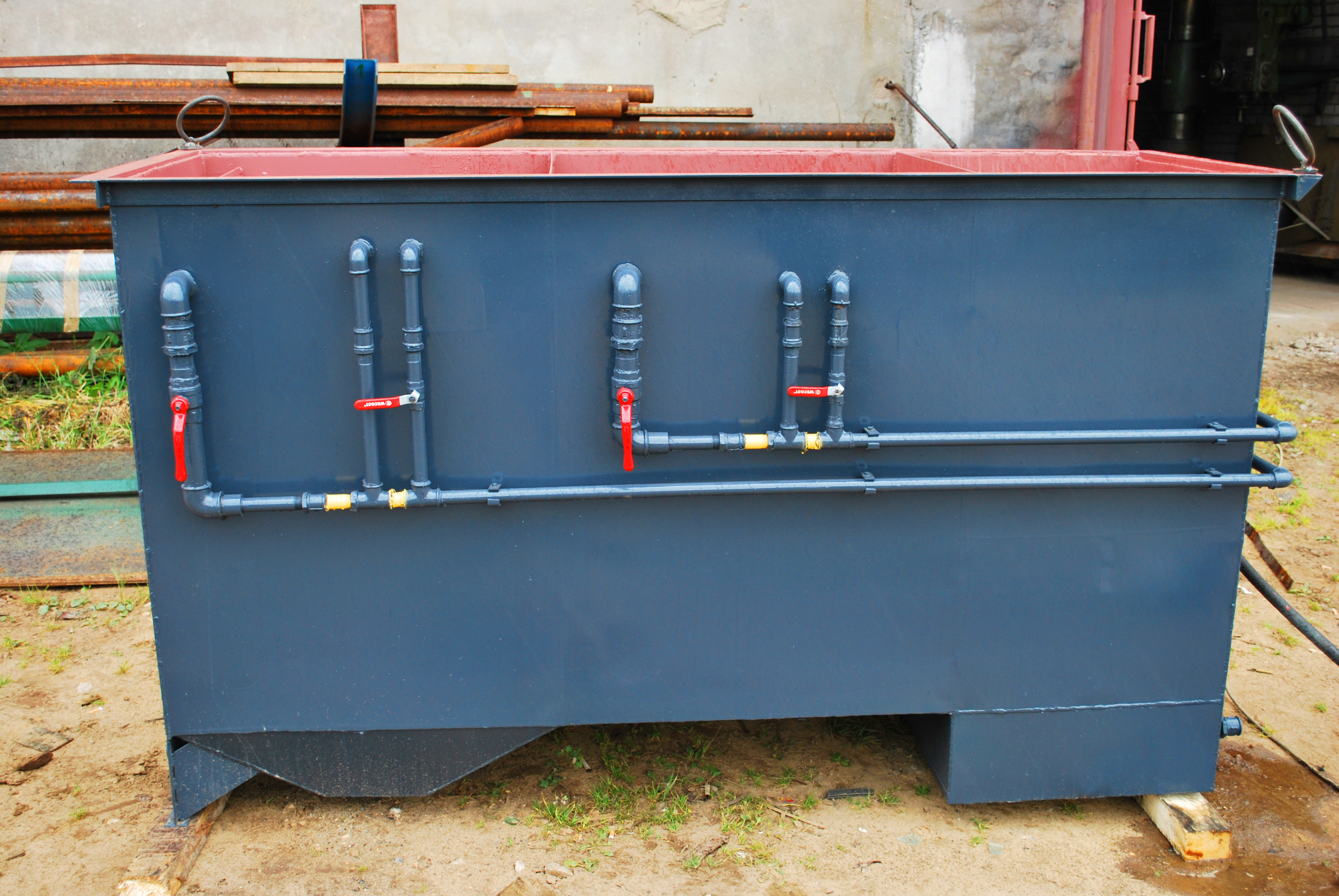 Из приямка они перекачиваются насосом в блок очистки, где сточные воды проходят напорный флотатор и фильтр со сменной песчаной загрузкой и дренажем из фильтровальной ткани.