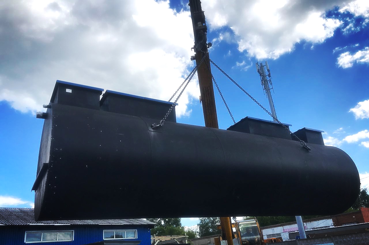 Габариты очистного сооружения: длина 6400 / диаметр 2400 / вес 4000 кг.