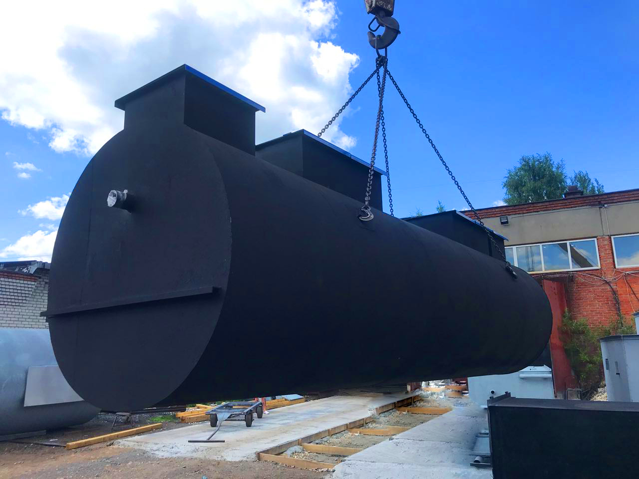 Габариты очистного сооружения: 10 блоков очистки длиной 11600 / диаметром 2400 / весом 69000 кг.